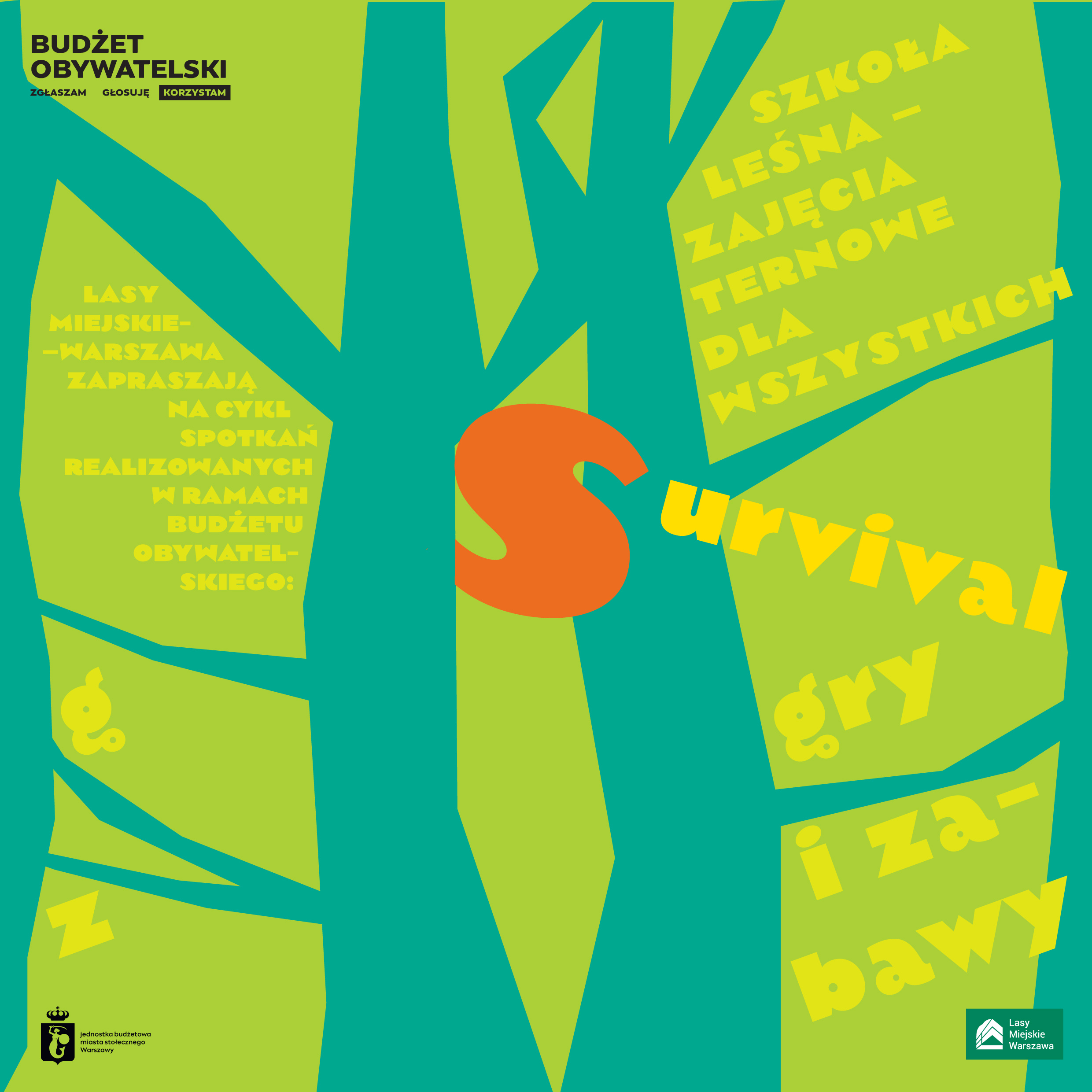 Chcielibyście zachęcić swoje pociechy do spędzania czasu na świeżym powietrzu? Przychodzimy Wam z pomocą! Zapraszamy na zajęcia z cyklu ,,Szkoła Leśna - zajęcia terenowe dla wszystkich: survival, gry i zabawy” realizowane w ramach Budżetu Obywatelskiego. Projekt zakłada przeprowadzenie 40 zajęć dla 3 grup wiekowych: